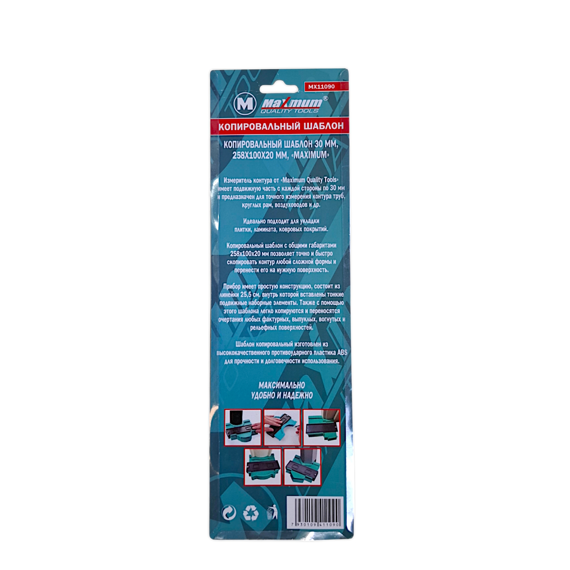Измеритель контура от «Maximum Quality Tools» имеет подвижную часть с каждой стороны по 30 мм и предназначен для точного измерения контура труб, круглых рам, воздуховодов и др. Идеально подходит для укладки плитки, ламината, ковровых покрытий.