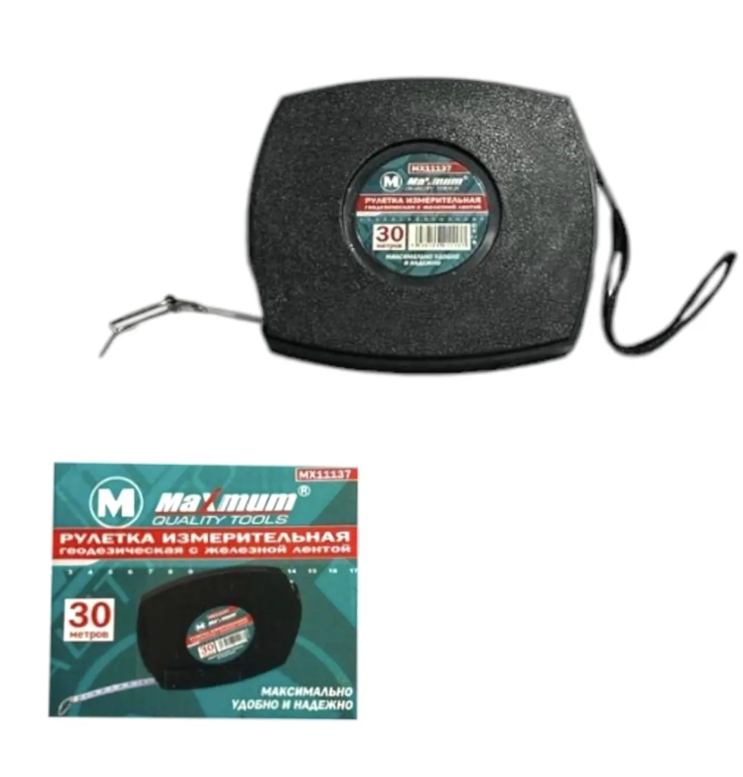 Рулетка измерительная с железной лентой, 30 м от бренда Maximum –это простая, надёжная конструкция, которая выполнена в прочном пластиковом корпусе.
