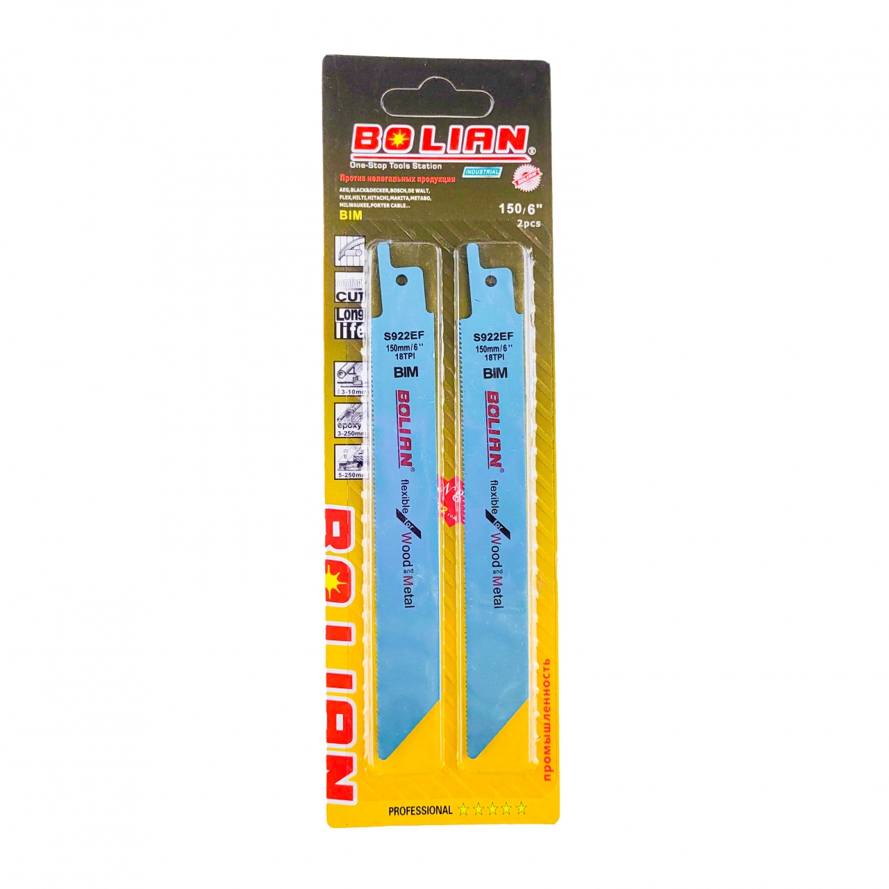Полотно для сабельной пилы 18 TPI 150 мм, «Bolian», S922EF