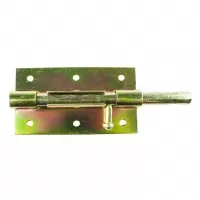 Шпингалет 100 мм выполнен из высокопрочной инструментальной стали покрытой желтым цинком для того чтобы фурнитура не ржавела и служила долгие годы.