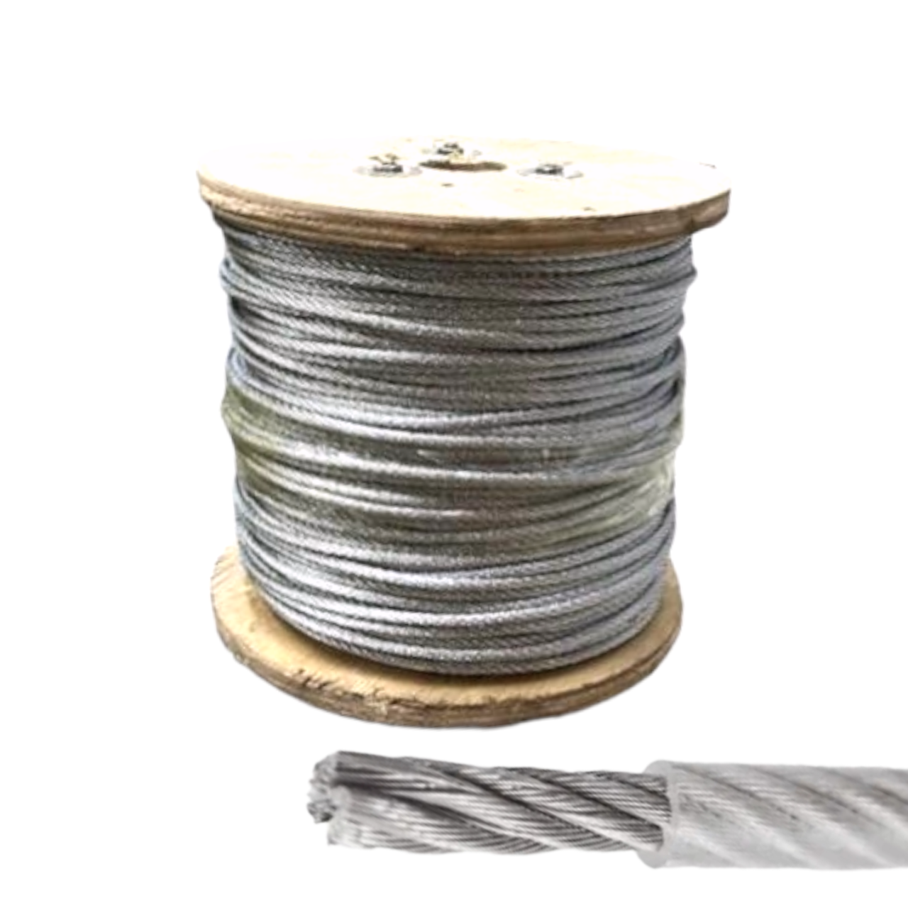 Разные направления свитки наружных и внутренних слоев прядей предотвращают кручение каната вокруг своей оси и его истирание. Трос 5 мм поставляется в бухтах по 150 метров.