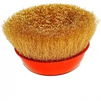 Щетка латунированная 125 мм для УШМ предназначена для зачистки изделий, удаления ржавчины и грязи с металлических поверхностей. Оснастка крепится к инструменту при помощи гайки М14.